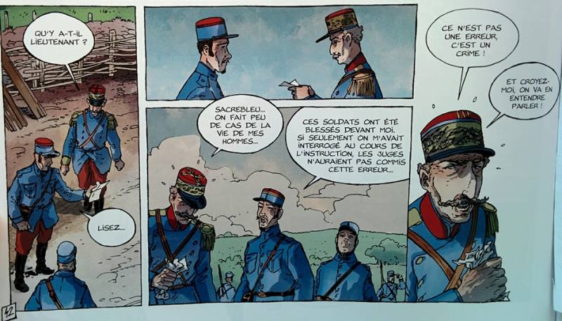 Cette bande dessinée nous montre que les officiers de terrain étaient plus soucieux de leurs hommes que les membres d'Etat major. Ils défendaient leurs hommes et se préoccupaient de leur sort (Colonel Dax des sentiers de la Gloire). Leur sollicitude pouvaient les amener ainsi à désobéir ou du moins se mettre en porte à faux avec les attentes du haut commandement.