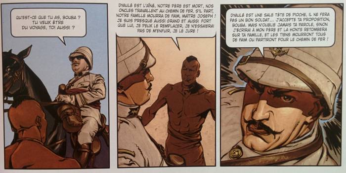 « L’homme de l’année » est une série du label série B de Delcourt. A travers 7 tomes, l’éditeur nous propose de revivre l’histoire d’anonymes pendant des périodes clefs de notre histoire. Inconnus de tous, ces hommes ont marqué la mémoire collective. Dans ce premier tome, on suit l’histoire de Boubacar, un ivoirien travaillant dans une cacaoyère appartenant à la famille de Joseph, un colon blanc. Enrôlés tous les deux dans l’armée coloniale, ils rejoignent l’Europe. Une réelle amitié naît alors entre les deux hommes. L'obéissance et l'adhésion de ces africains tirailleur sénégalais pour la cause française prend son origine dans la contrainte mais pas uniquement.
