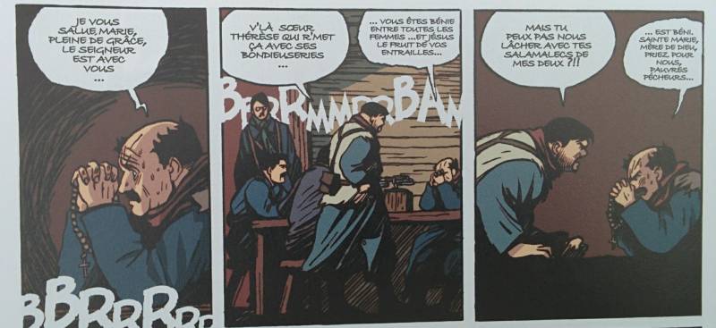 La religion comme refuge était perçue par les anticléricaux comme un instrument pour tromper l'individu et le maintenir dans sa condition. La foi aidait aussi beaucoup de poilus à survivre. Cette réalité est très peu rapportée dans la BD. En enlevant les dernières illusions à son camarade sur la religion, ce poilu va le mettre en danger …
