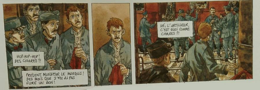 Dumontheuil nous a confirmé ne pas avoir eu d'objectif historique dans cette bande dessinée, pourtant il tape juste sur ce point. Le combattant de 1914 appartenait à une société qui lui donnait un statut avec beaucoup de contraintes.