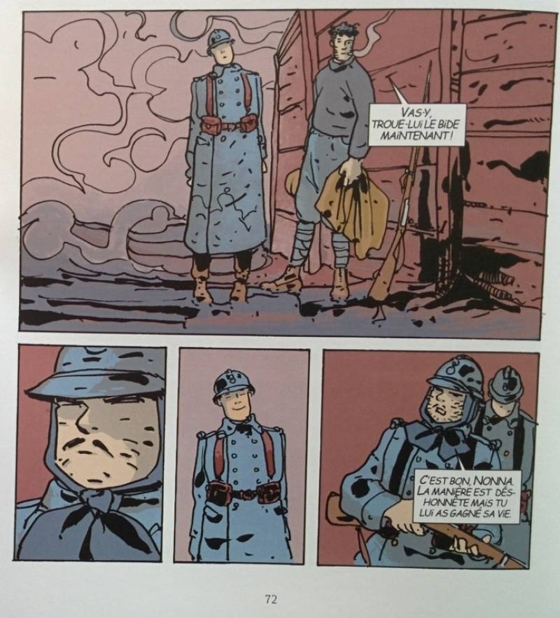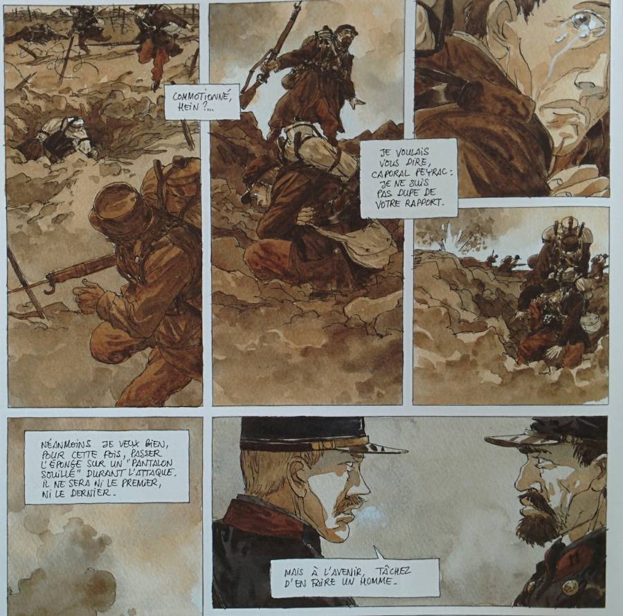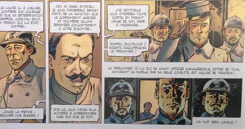 Notre héros est jugé par ses responsables pour avoir négocié une trêve de quelques minutes avec les allemands afin de sauver les blessés du champ de bataille. Qui plus est, l'officier dont il a sauvé la vie à cette occasion lui reproche son initiative et le poursuit pour avoir agi dans l'illégalité. On en fait certainement un peu trop au niveau du scénario mais les ci les codes de la romance sont bien déclinés. D'où certainement le succès de cette série où la guerre de 14 est un décor très bien dessiné. Les péripéties que vivent les personnages pourraient se décliner dans d'autres époques et d'autres contextes.