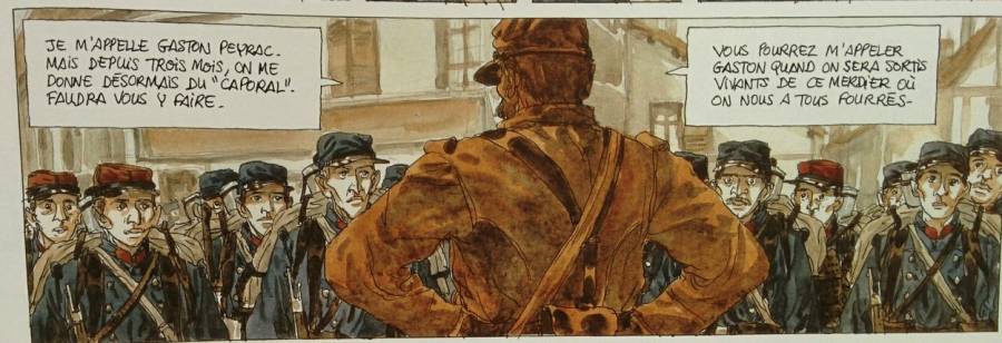 La bande dessinée contemporaine ne traite pas de faits d'armes où d'actions épiques mettant en valeur le comportement de tel ou tel chef. Pour nos auteurs, “Dénoncer la guerre” ne fonctionne pas bien avec “Montrer l'exemplarité et les vertus des chefs”. Certainement que ce genre de pratique renverrait le lecteur dans la première moitié du XX siècle où la bande dessinée était souvent au service d'une propagande guerrière. Et pourtant l'exemplarité du comportement des chefs de terrain a été largement reconnu historiquement. Leur contribution a été vitale dans les combats. Nos auteurs contemporains pour la plupart d'entre eux, assez exigeants sur la crédibilité historique de leurs scénarios, ont plutôt bien traité les autres facettes du rôle du chef.